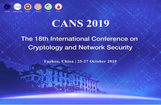 10月25日至27日,第18届密码学与网络安全国际学术会议(The 18th International Conference on Cryptology and Network Security, CANS 2019)在福州召开。