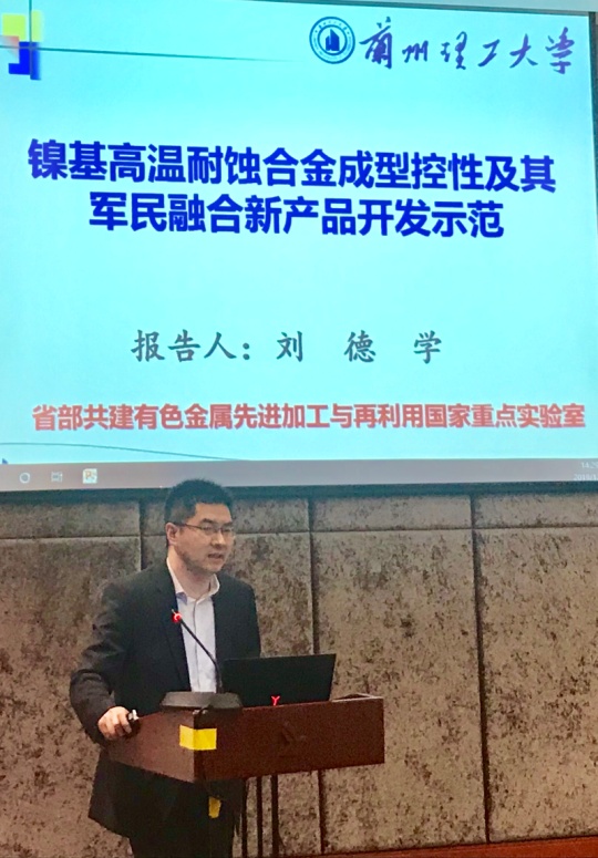 兰州理工大学材料科学与工程学院刘德学教授、李俊琛副教授、国家重点实验室唐兴昌副研究员等参加会议。刘德学教授作题为“镍基高温耐腐蚀合金成型控性开发示范”的大会特邀报告,介绍了材料科学与工程学院学科建设的基本情况及省部共建有色金属先进加工与再利用国家重点实验室的重点研究方向,和参会专家学者展开深入研讨。