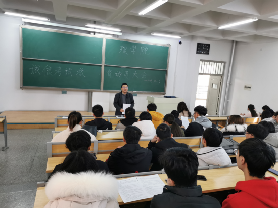 2019年12月13日中午,理学院在彭家坪校区集贤楼206教室召开全院学生干部大会,会议由学院党委副书记刘振宇主持,辅导员安星老师、赵倩倩老师及全体学生干部参会。