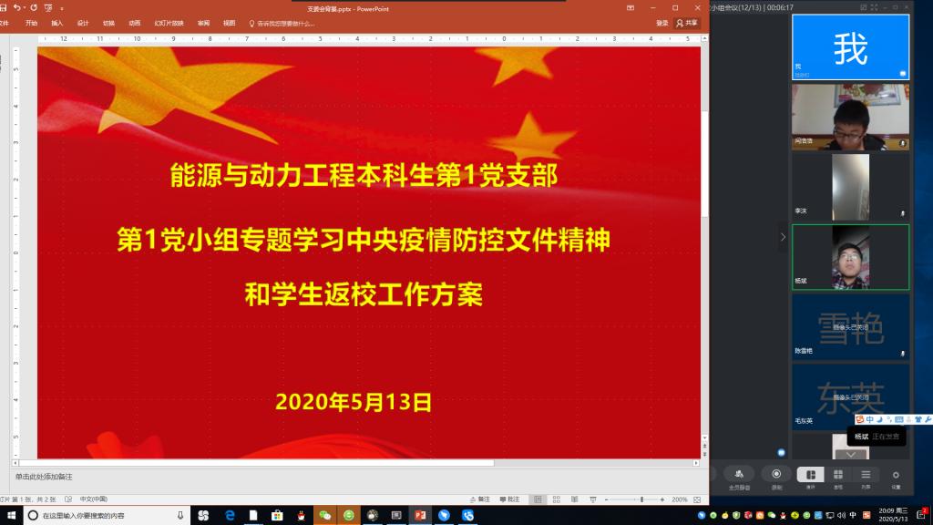 5月13-14日,能源与动力工程本科生第1党支部第1党小组和第2党小组分别在陇政钉专题学习《中央疫情防控文件精神》和《学生返校工作方案》。党支部全体党员、发展对象参加学习。