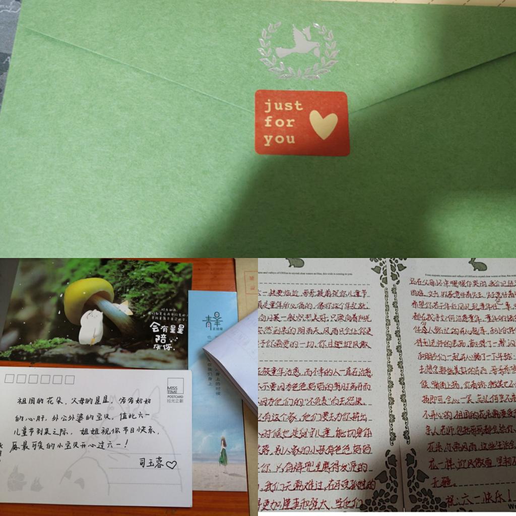 “好伙伴,共成长”的志愿者们通过信件的邮寄给留守儿童送去“六一”儿童节的节日祝福和关爱,与留守儿童分享成长故事,让他们打开心扉,缓解孤独感,鼓励留守儿童培养读书学习兴趣、帮助孩子们树立成长目标。各位志愿者在信中对于留守儿童在成长过程中容易出现的烦恼和问题,及时地进行了解答,帮助他们走出困惑,更加明白未来努力的方向。