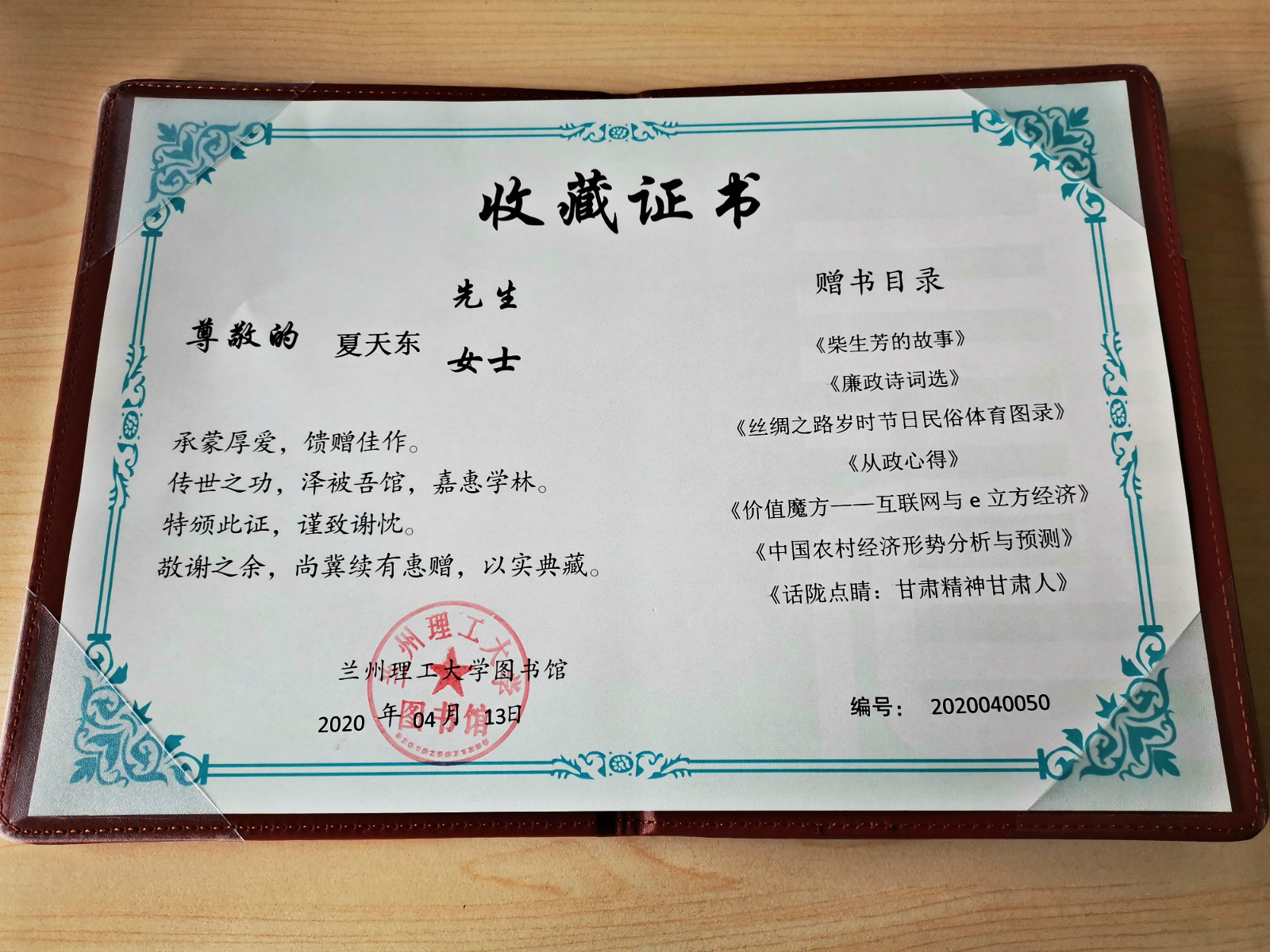 “赠人玫瑰,手留余香”。学校非常重视图书馆的馆藏建设,夏天东曾多次向图书馆捐赠个人收藏的书籍,此次他仔细遴选了七十余册师生阅读的和图书馆收藏的图书捐赠,希望丰富图书馆馆藏的同时,倡导大家重视阅读、分享阅读,共同传播知识、传承文化。图书馆将尽快对该批捐赠书籍加工入库,使更多老师和学生受益,让其发挥更好的价值。