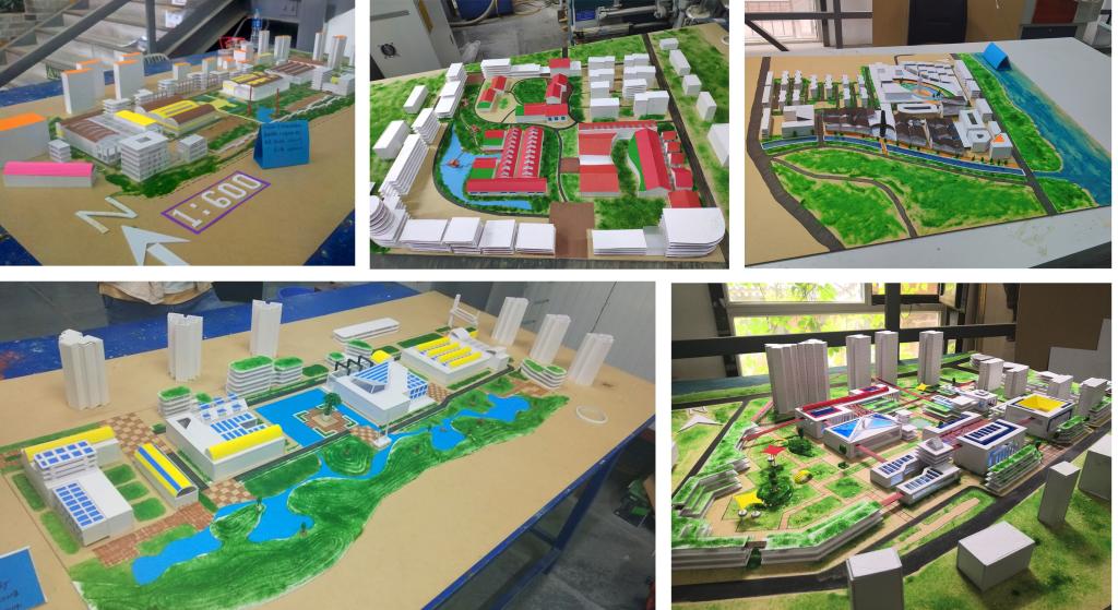 此次模型制作以PVC板、奥松板为主要材料,在方案设计中期阶段根据各小组既定的设计方案制作模型。通过模型有效地推进创造过程,帮助学生推敲、探求理想的方案,完善设计构思。本次模型制作及展览活动不仅培养了同学们的创作能力、动手能力和团队协作能力,而且直观的检验了设计方案中的不足,引导学生及时修正。模型展吸引了众多师生驻足品评,在欣赏作品的同时,为同学们提供了交流、探讨的机会,取得了良好的效果。