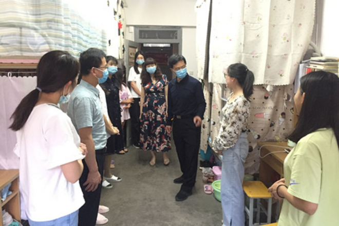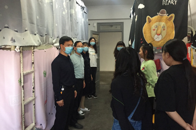 6月17日晚,学校党委常委、副校长陈志华、在文学院领导及辅导员陪同下,深入彭家坪校区联系班级学生宿舍。深入了解同学们思想、学习、生活、安全、卫生等情况。