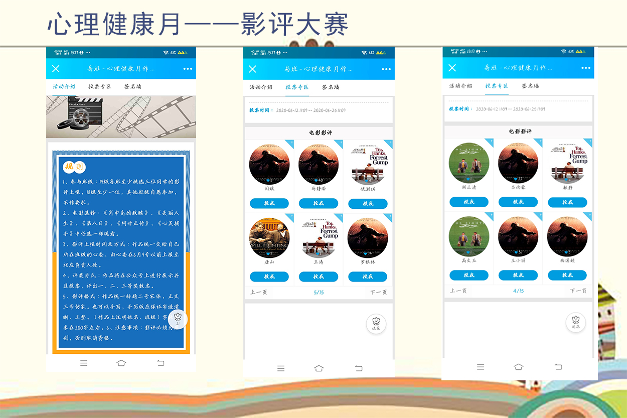 学生通过撰写影评进行评比,评选出了一二三等奖。