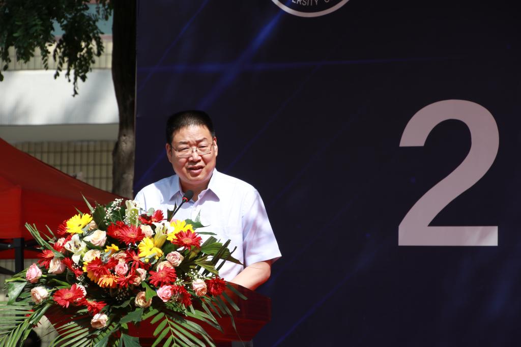 材料学院院长李文生致辞,他希望全体毕业生在掌握材料学过硬的专业基础之上,在追梦的道路上更好的理解社会、融入社会,内外兼修、厚植社会情怀,外塑形、内修为,在未来的岗位与工作中,锤炼技能、强化技术、胸怀世界、坚韧平实、洞察新知,努力将自己提炼为“知识+修为”的最优“合金”