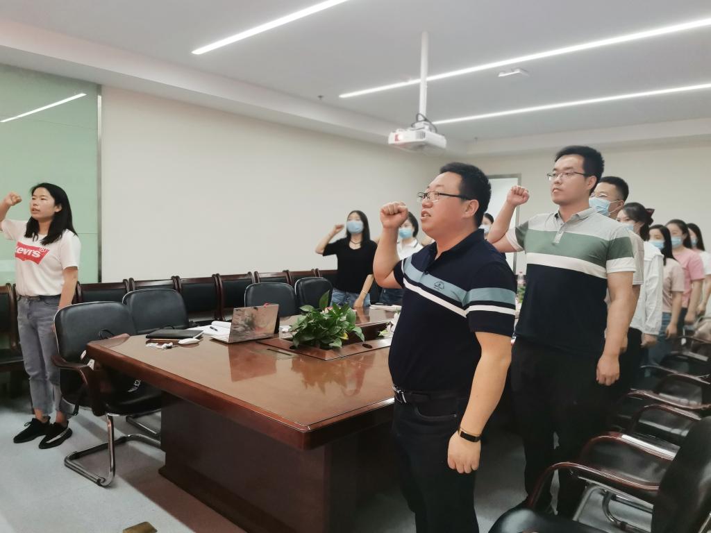 曾记否,99年,筚路蓝缕、风雨兼程,中国共产党带领人民不断铸就民族复兴的伟大业绩。会议伊始,党员同志们一起重温党的历史,之后在主持人的带领下共同学习中国共产党章程。随后学习了“习近平给复旦大学《共产党宣言》展示馆党员志愿服务队全体队员的回信”,邀请与会党员代表发表感言,深入领会党员精神,号召与会党员同志不忘初心、以史为镜、坚定理想信念,做合格党员、优秀党员。随着与饶旭鹏院长和宋文元老师一起重温入党誓词,齐声宣誓,会议达到了高潮。全体党员同志,面向党旗,举起右拳,庄严宣誓。铮铮誓言,凝结着中国共产党人的初心和使命,也坚定了我们的理想和信念。