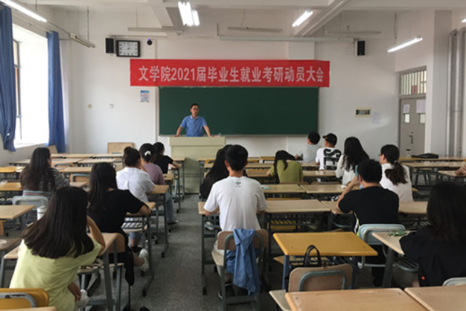为有序地推进2021届毕业生就业工作,文学院于7月13日下午三点在西教2号楼402教室召开2021届本科毕业生就业考研动员大会。书记张维权、辅导员郭凯峰以及2021届全体毕业生参加了本次会议。