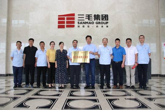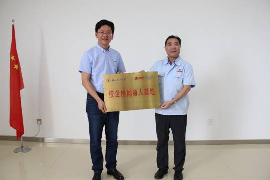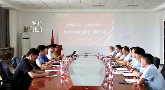 7月27日,机电工程学院党委书记王正民、副院长彭斌一行6人在兰州三毛实业有限公司参加了“校企协同育人基地”揭牌仪式,仪式由三毛实业有限公司党委副书记、董事、总经理谭小毅主持。三毛实业公司党委副书记、董事李彦学,副总经理周希琪,总工程师李文全等企业领导,以及企业代表30余人参加揭牌仪式。