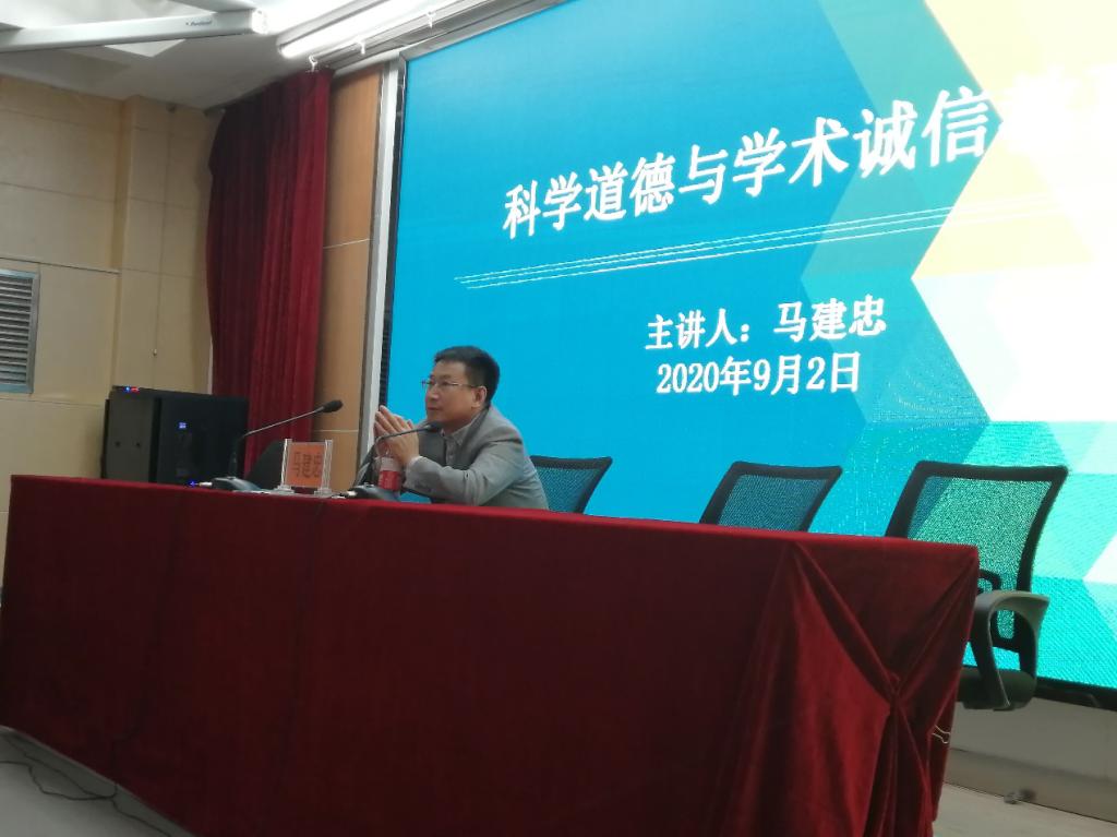 2020年9月2日下午4:00,生命科学与工程学院在校本部1#北楼204邀请资深研究员马建忠为2020级全体研究生新生上开学第一课“科学道德与学术诚信教育”,报告会由党委副书记武军莉主持。