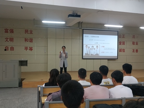 首先,马文静对同学们进行就业礼仪培训。分别从行为举止礼仪、形象礼仪、会面礼仪、商务礼仪、面试礼仪五个方面对同学们进行了培训,指导大家做好一个懂礼仪的求职者。她还分析了当前就业形势,针对毕业生在求职过程中存在的问题和注意事项,从就业准备、就业流程、在线签约等方面给同学们做了详细说明,建议同学们把握就业时机,顺利就业。