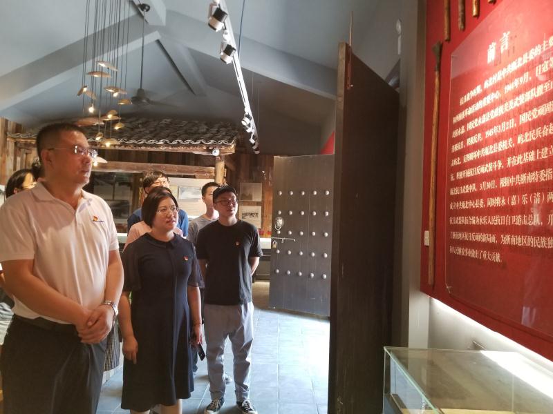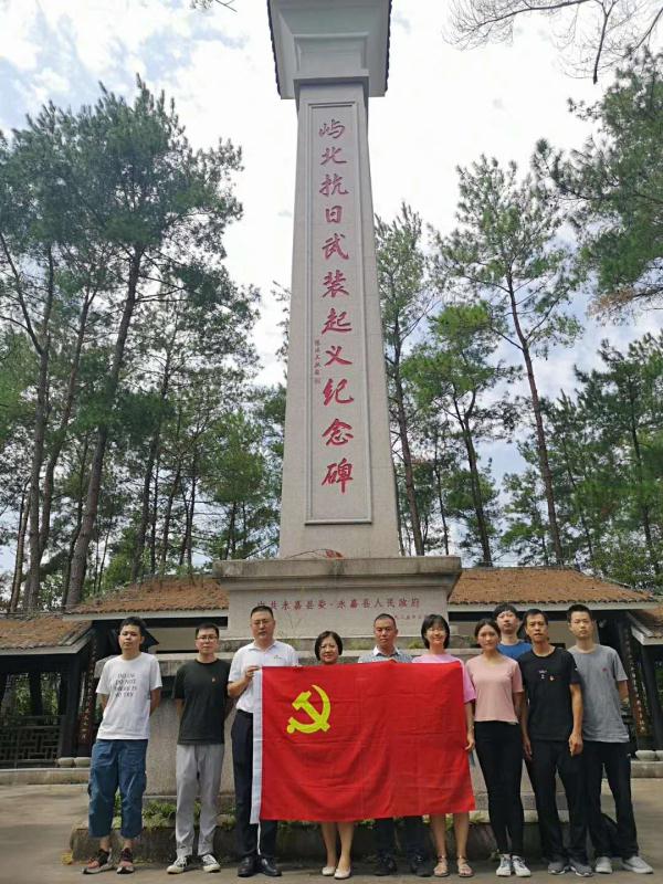 屿北村曾是土地革命战争时期红十三军活动的中心区域、抗日战争时期原瓯北县委的主要驻地,是老革命根据地。在屿北抗日武装起义纪念馆里,大家认真观看历史老照片和步枪、锄头及镰刀等革命武器,详细了解了先辈们的英勇事迹,深切感受和领会先辈们坚忍不拔、不畏艰难的必胜信念。站在屿北抗日武装起义纪念碑前,党员们怀着无比崇敬的心情,面向党旗,重温入党誓词,心中的理想信仰更加坚定。