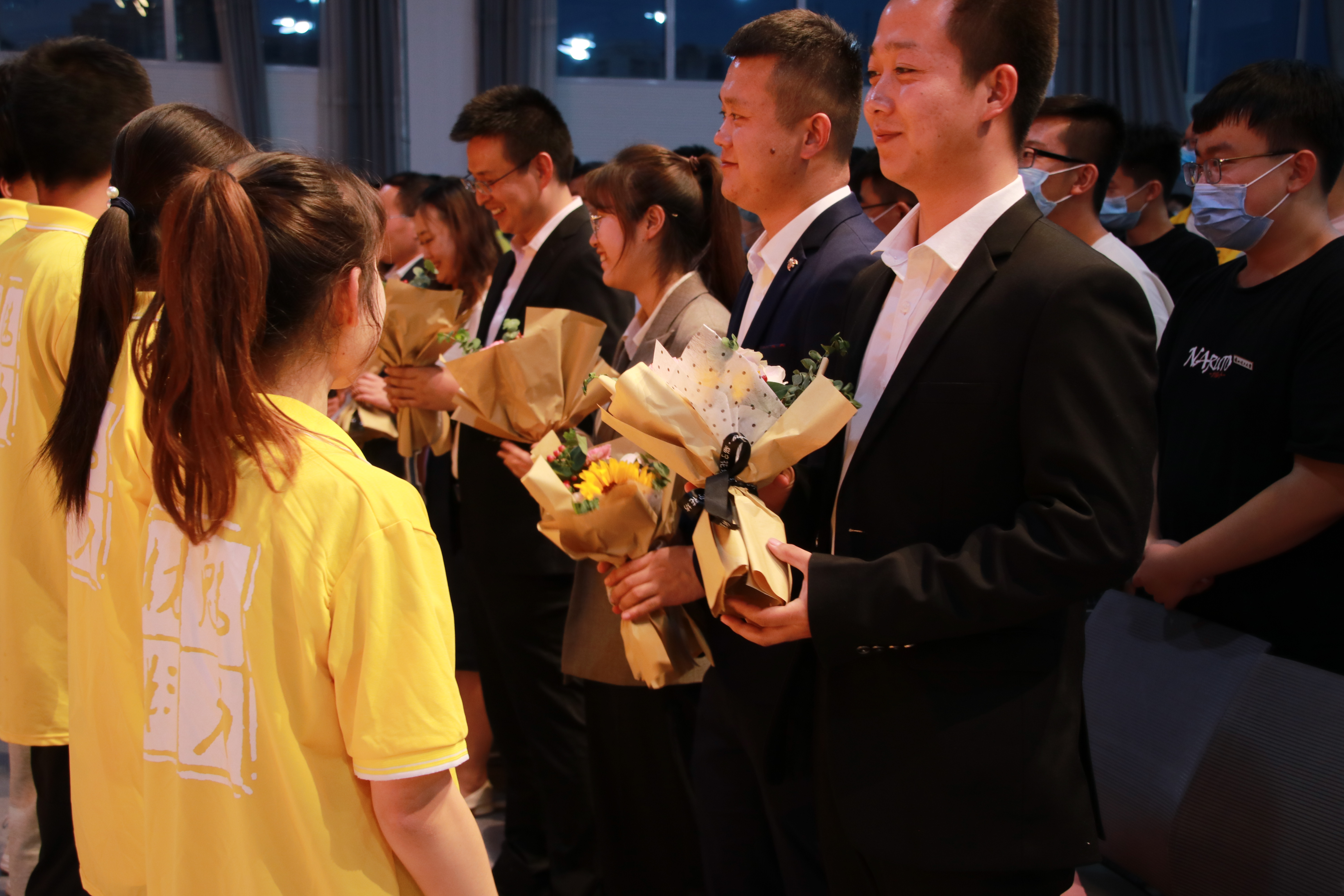 优秀学生代表2017级郭颖雪、新生代表2020级王强发言,他们从树立学习目标、养成良好习惯、充分利用学院资源、敢于尝试新事物等方面给全体新生提出了一些规划和建议,为大家未来四年的学习指明方向。王强带领全体师生宣读校训、院训,铿锵有力的“奋进求是,团结、求是、拼搏、攀登”响彻礼堂,同学们以饱满的热情立志将校训、院训内化于心,外化于行。随后全体同学佩戴校徽,从这一刻起他们也肩负起百年学府的荣光,在热烈的掌声中,学生代表向老师们献上捧花,全体学生齐声以“老师,您辛苦了!”向老师们致以最诚挚的谢意。