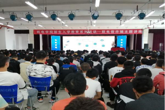 为进一步夯实新生入学教育实效、丰富同学们的生活常识,全面普及防诈骗知识,切实增强同学们的自我安全防范意识,9月15日下午,机电工程学院邀请七里河区分局反电信诈骗大队马顺延警官在彭家坪校区大学生活动中心为2020级新生做了防范电信诈骗主题讲座。本次活动由新生辅导员程万栋主持,全体2020级新生参加。