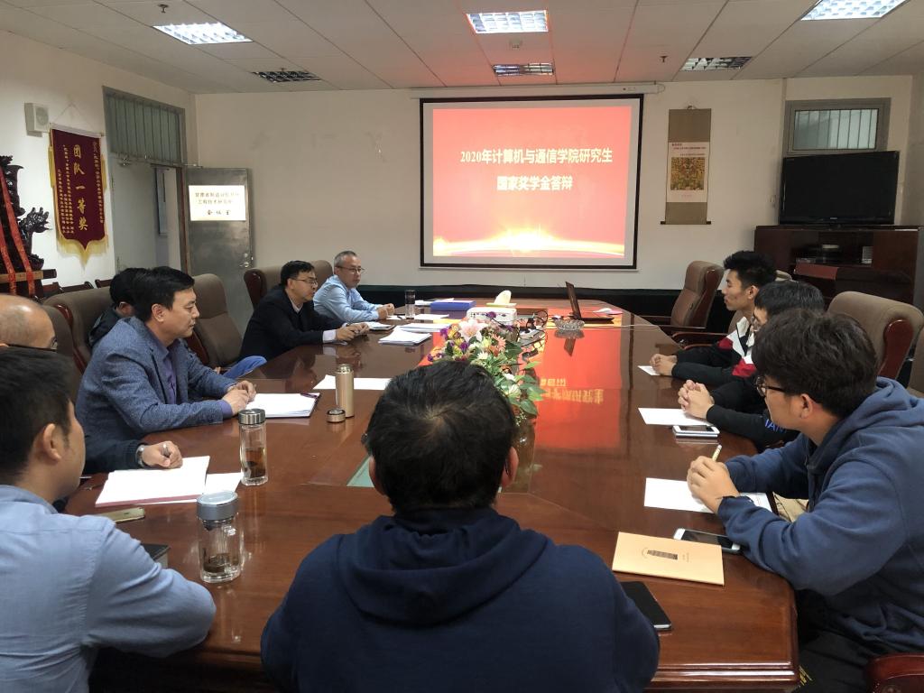 9月23日下午,计算机与通信学院在会议室举行2020年度研究生国家奖学金答辩会。学院党委书记曾贤虎,院长冯涛,学院研究生学业奖学金评审委员会的成员及部分同学参加了答辩会。本次答辩会由学院党委副书记白杨主持。
