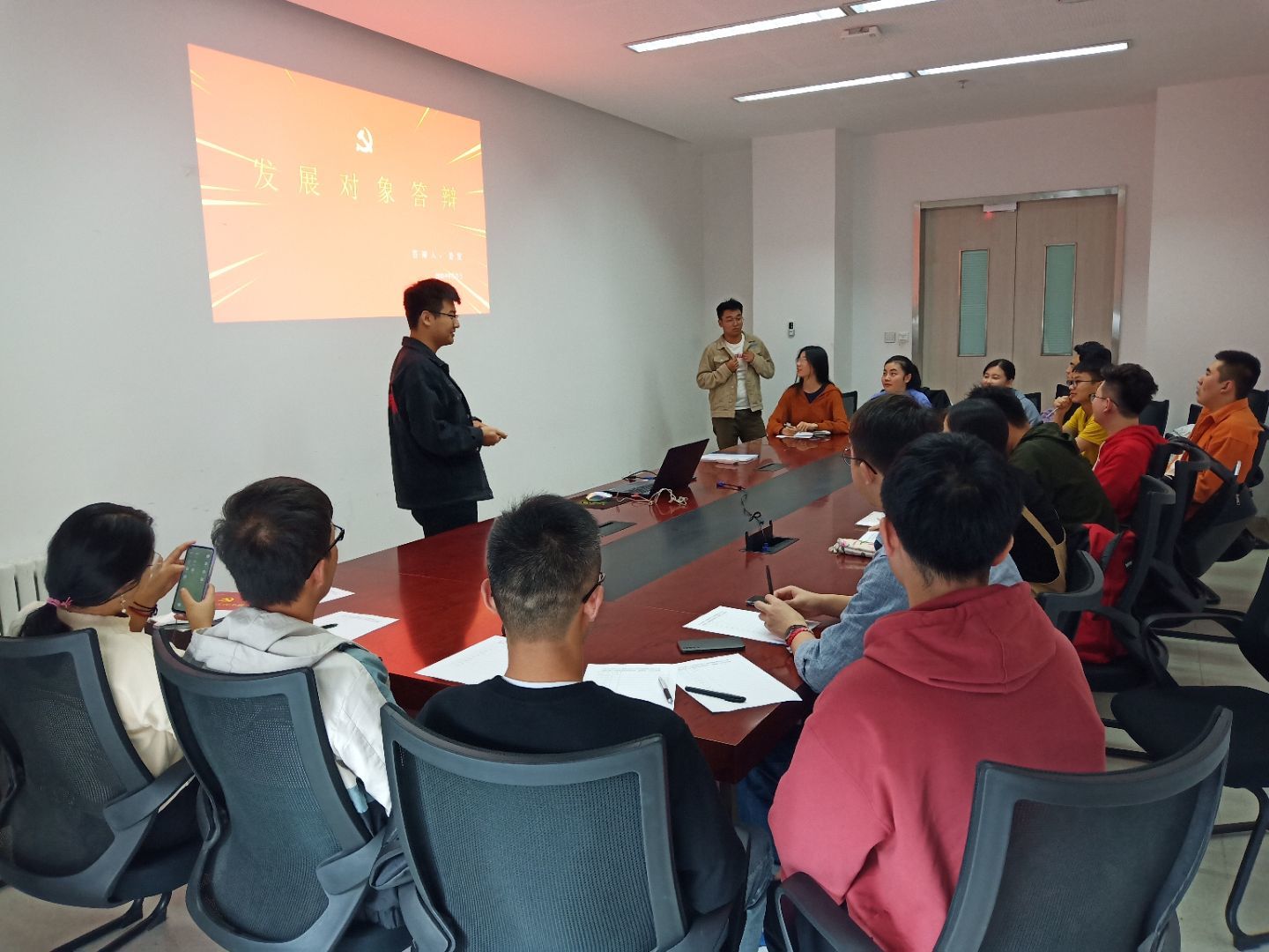 支部组织委员杨涛介绍了本次活动的主要目的、答辩流程及注意事项。10名入党积极分子就培养期内个人思想、学习、生活、工作和作用发挥等情况进行了汇报。支委和全体党员组成的评委团严格按照要求,坚持公开公平公正的原则,本着为党支部和同学们负责的态度,对每一位同学在培养期内的表现和作用发挥进行了综合考核。答辩结束后,支委听取了党小组、培养联系人、党员和群众的意见,深入了解了入党积极分子的入党动机和培养期内的表现。
