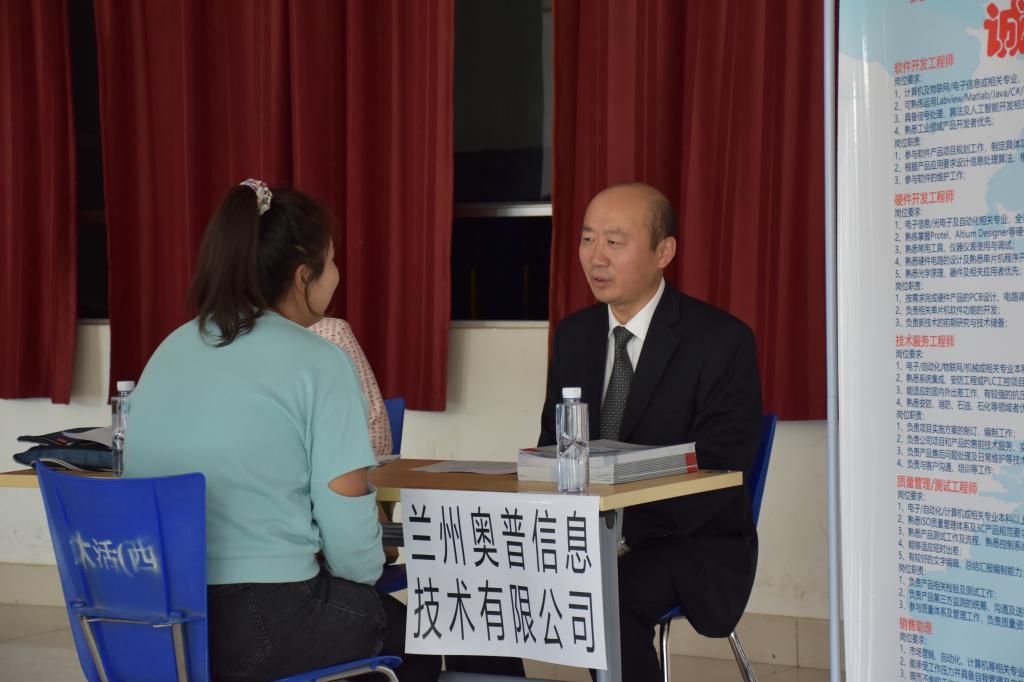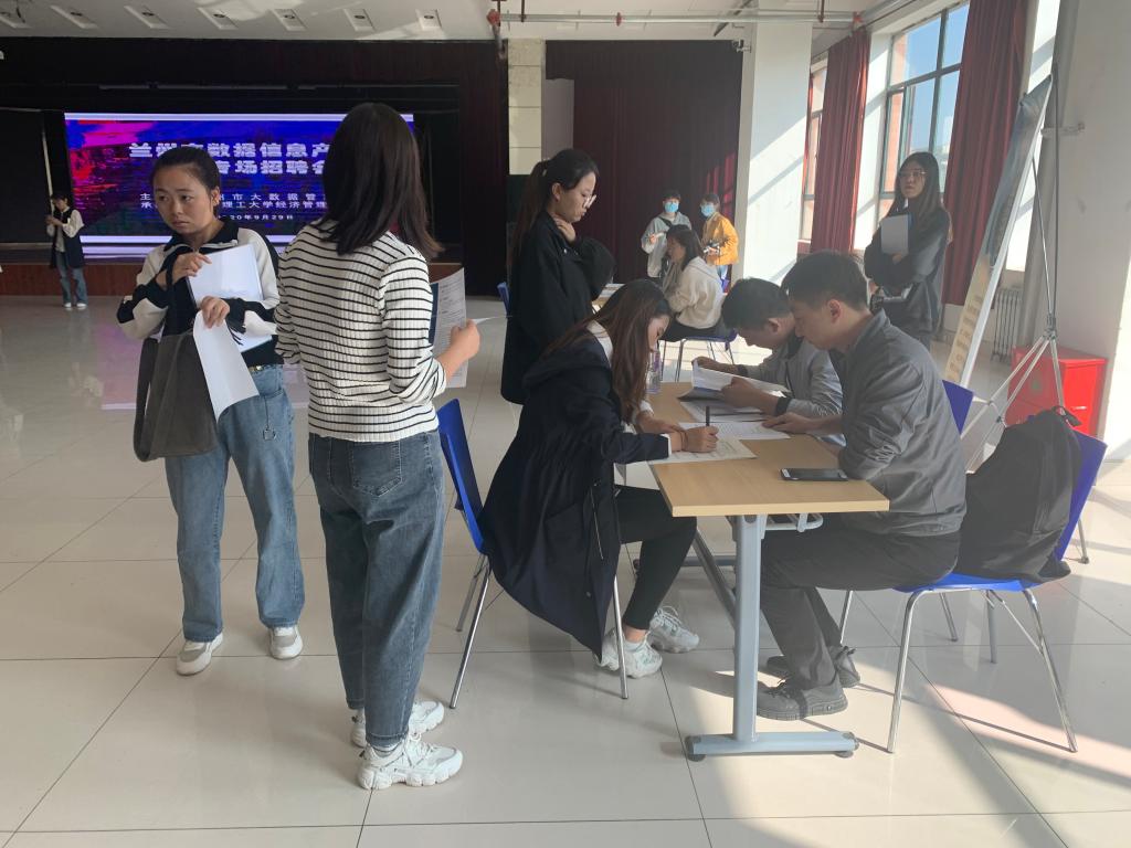 在当天举行授牌仪式的同时合作三方还联合举办了兰州市数据信息企业校园专场招聘会。大方电子、瑞杰、普光、奥普等多家大数据信息企业提供了100多个就业岗位供学生选择,学生们对各岗位兴趣浓厚,并和企业达成了多个意向用人协议。
