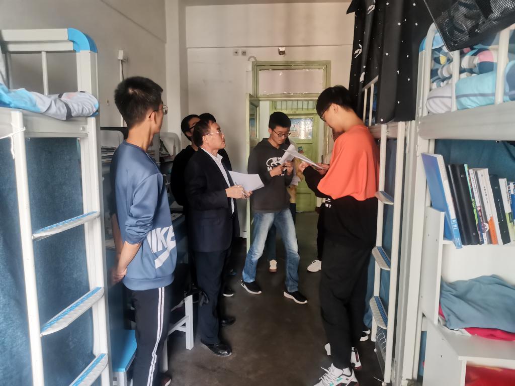 王祎敏叮嘱同学们外出时注意自我防护,要严格落实假期期间体温检测要求和疫情防控相关信息登记上报工作,切实增强责任意识和防范意识,逐项落实落细安全措施,防止麻痹松懈,坚决落实到位。他说,同学们要注意节假日期间人身安全、财产安全、交通安全、防范电信诈骗、消防安全、食品卫生安全等等。老师们认真检查了学生宿舍的卫生、用电、用水等情况,仔细询问了学生近期的考试和课设情况,对假期留校的同学也进行了安全教育,对放假期间的用水用电、卫生、关门关窗等事项做了强调,确保人生财产安全和宿舍安全。