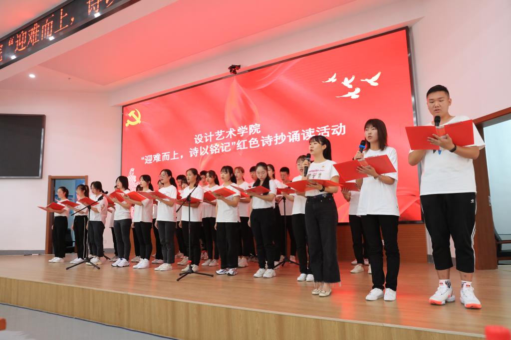 新冠肺炎疫情爆发以来,牵动着全国人民的心。面对疫情,共产党员“我是党员我先上”的价值追求,让我们动容。为表达设计艺术学院党员同志对抗疫英雄的赞美,进一步凝心聚力,丰富党员的组织生活,展示我院学生党员的昂扬斗志和担当精神,9月29日下午,在图书馆二楼报告厅,我院组织开展“迎难而上诗以铭记”红色诗抄朗诵活动,全体党员、积极分子、支部书记参加了本次活动。