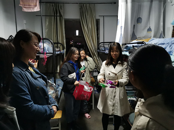 9月30日,为做好国庆节和中秋节期间学生安全工作,确保学生度过一个平安、健康的节日,传达学校学院对学生的关心与关爱,外国语学院党委书记杨雅琼、院长任育新、党委副书记焦娜、全体辅导员和新生班主任老师深入学生宿舍,对同学们进行了中秋假期慰问,并开展了安全、卫生检查工作和安全教育工作。