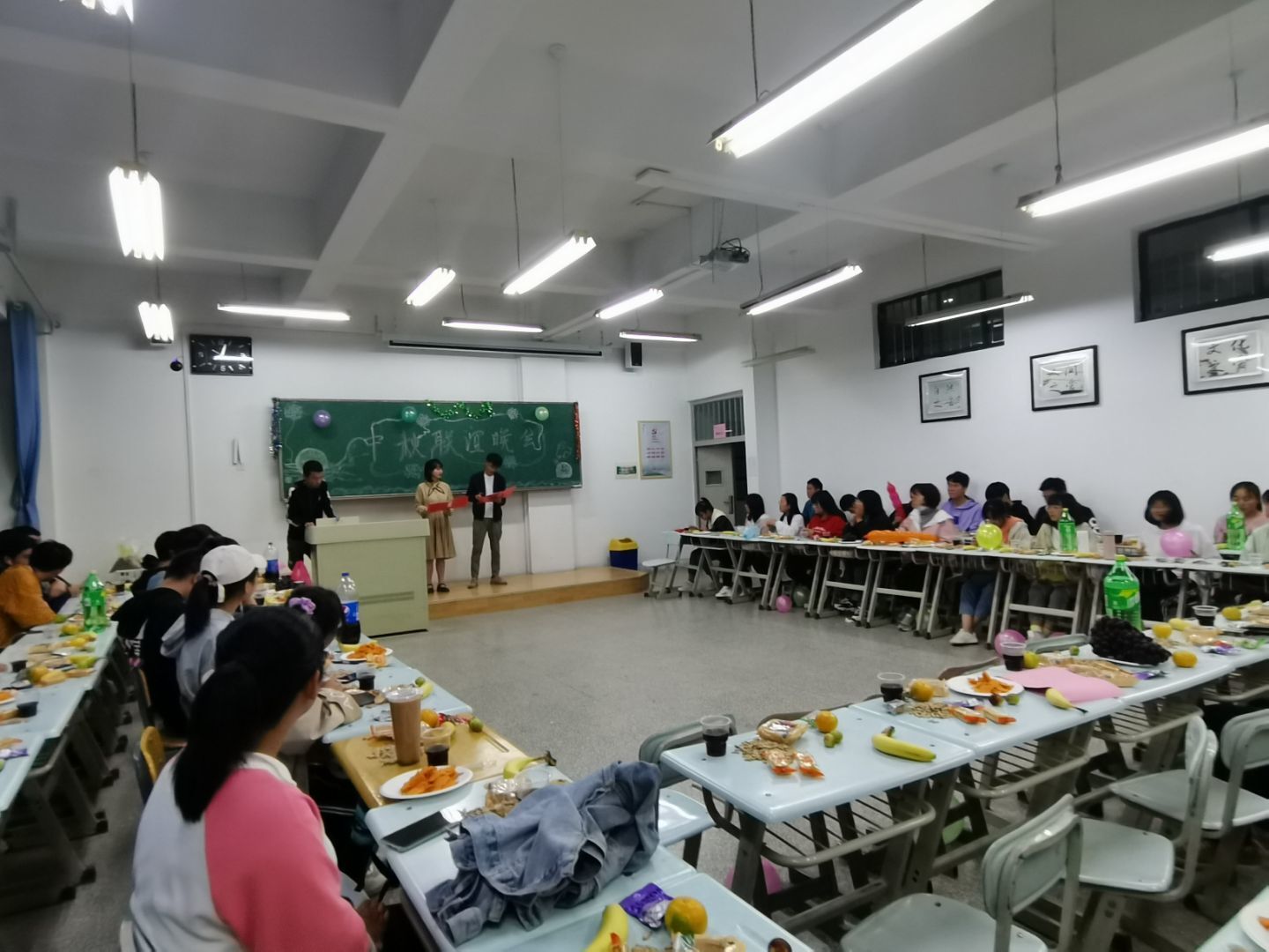 活动以班级为单位举行,各班班主任参加并和班级同学共度佳节。随着夜幕降临,伴随着悠扬的音乐同学们翩翩起舞,让同学们心潮澎湃起来。同学们表演了各式各样的节目,有婉转动听的《世界美好与你环环相扣》,有活力四射的《shuffledance》曳步舞,有诗朗诵《我的祖国》等等,同学们精心准备的一个个节目,既展示了才艺,也温暖了在外求学的心灵。品尝着金城的瓜果,香甜的月饼,观赏着精彩的节目,让会场充满欢声笑语,整场晚会沉浸在浓厚的爱国爱家的氛围。
