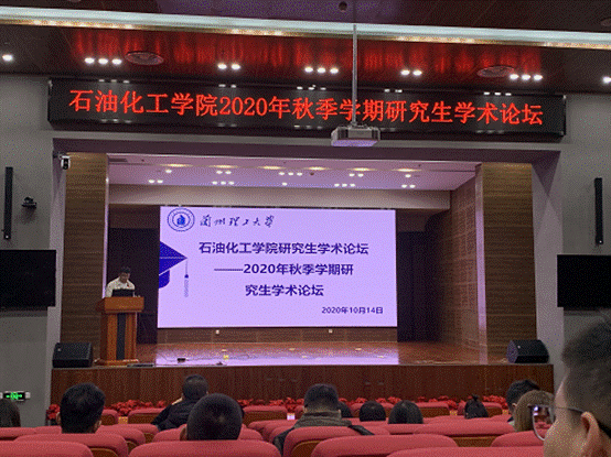 科技传承友谊,交流促进创新。为给研究生提供一个学术交流的平台,拓宽研究生的学术视野,推进研究生科技创新,10月14日下午,石化学院在彭家坪校区图书馆106报告厅举办朋辈引领——2020年秋季学期研究生学术论坛,全体2020级硕士研究生及优秀研究生国奖获得者参加,本次论坛由科研学术部副部长杨小成主持。