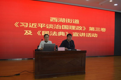 为深入学习贯彻《中华人民共和国民法典》和习近平总书记关于民法典的重要讲话精神,法学院常丽霞教授应兰州市西湖街道党工委的邀请,作题为《走进民法典时代》的专题讲座,宣讲民法典。宣讲会由街道党工委副书记、街道办事处主任李军主持,西湖街道人大代表、政协委员、辖区单位党组织负责人及街道班子成员、各社区党组织负责人、街道机关干部、社区党建专干共120余人参加了此次宣讲会。