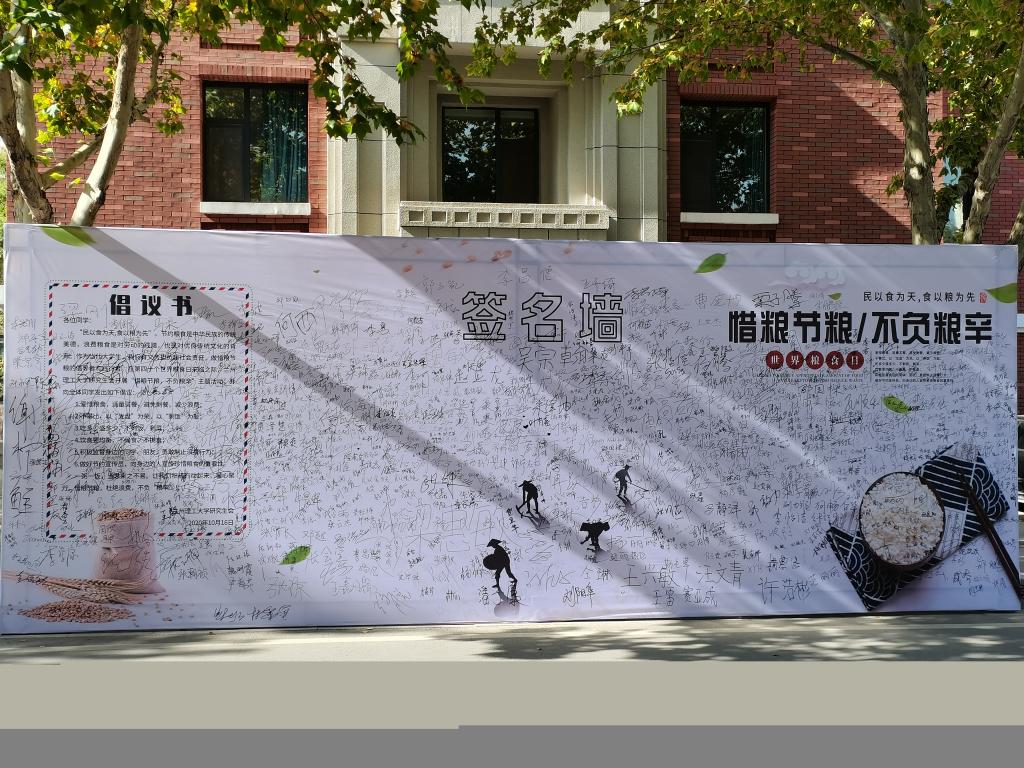 一个签名,一份承诺。活动通过阅读倡议书和现场工作人员对粮食安全的介绍,让广大同学意识到节约粮食、杜绝浪费的重要性,同时签名以表达对“惜粮节粮,不负粮辛”的庄重承诺。使同学们深刻领会到“手里有粮,心中不慌”的道理,并表示要把厉行勤俭节约、反对餐饮浪费的倡议落到实处,积极行动起来,凝心聚力,做到细处。