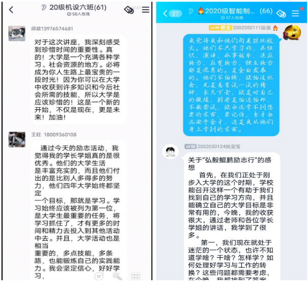 接着,从我院保研学生、优秀学生干部、国奖获得者、签约成功者中选拔的“弘毅鲲鹏”学生代表组成的朋辈引领团逐个讲述了自己对大学生活的感悟和认识,他们生动形象地讲述了如何度过迷茫的大一、步入艰辛的大二、迎接多彩的大三、最终到收获的大四。并对新生提出的相关问题做出了详细的解答,最后参会老师为“弘毅鲲鹏励志行”朋辈引领团成员颁发纪念品,希望他们风采传承,今后更有万千佳绩!