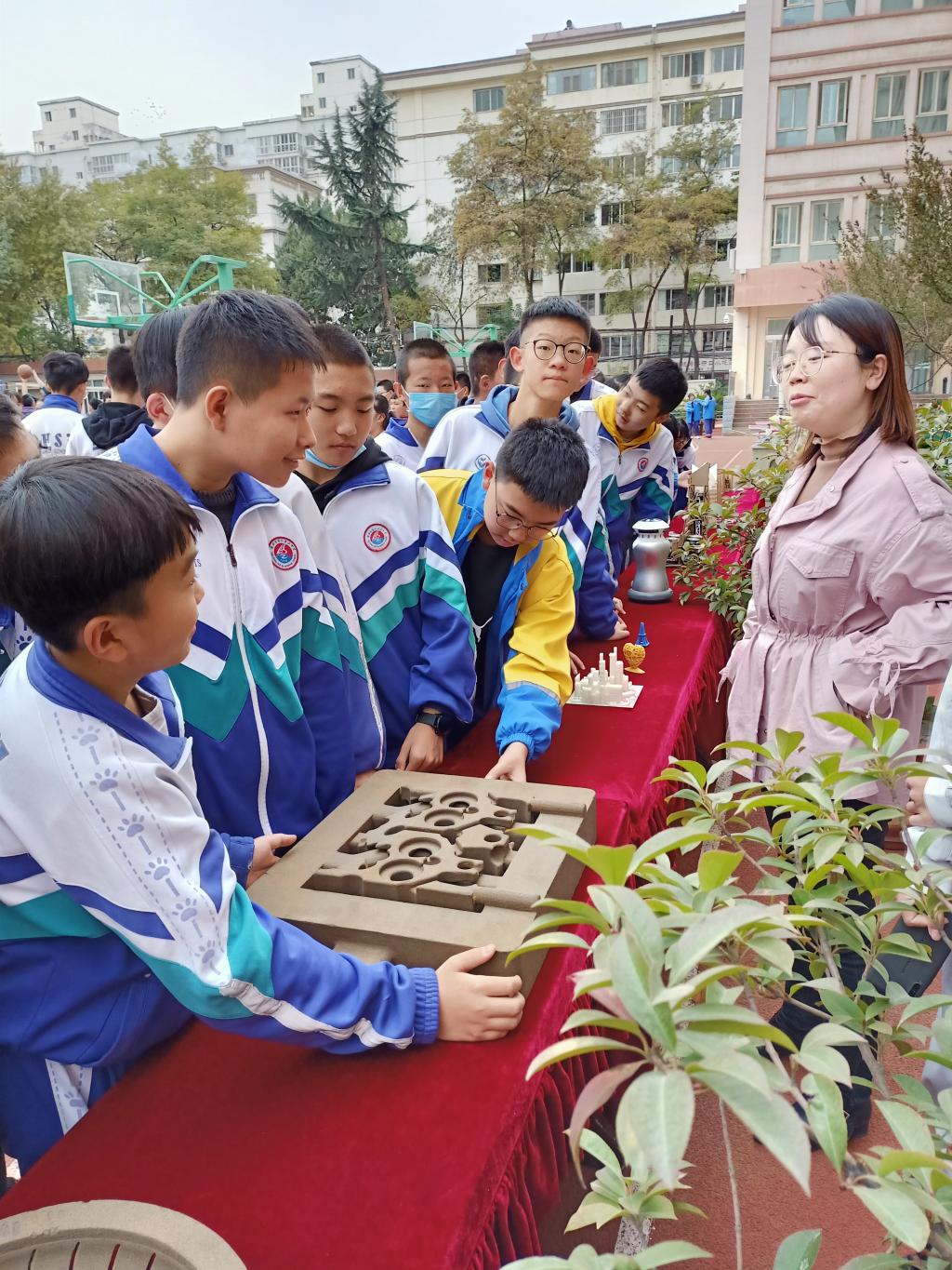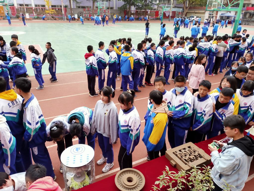 开幕式后,李文生以“树立远大理想、励志报效祖国”为主题,向63中学400余学生做了精彩的报告;材料学院国家奖学金获得者郭颖雪同学,向同学们分享了大学读书的体会,并鼓舞中学生努力学习。我校新材料创新中心、机器人创新中心、航模协会、机器人协会等同学们现场展示了我校大学生自己研发制作的无人机、机器人、智能装置、3D打印砂模、新材料、文创产品等大学生科技文创作品,展示环节吸引并提高了中学生科技创新兴趣。同时也为我校进一步推进互联网加大赛萌芽赛道的组织实施建立了良好的开端。