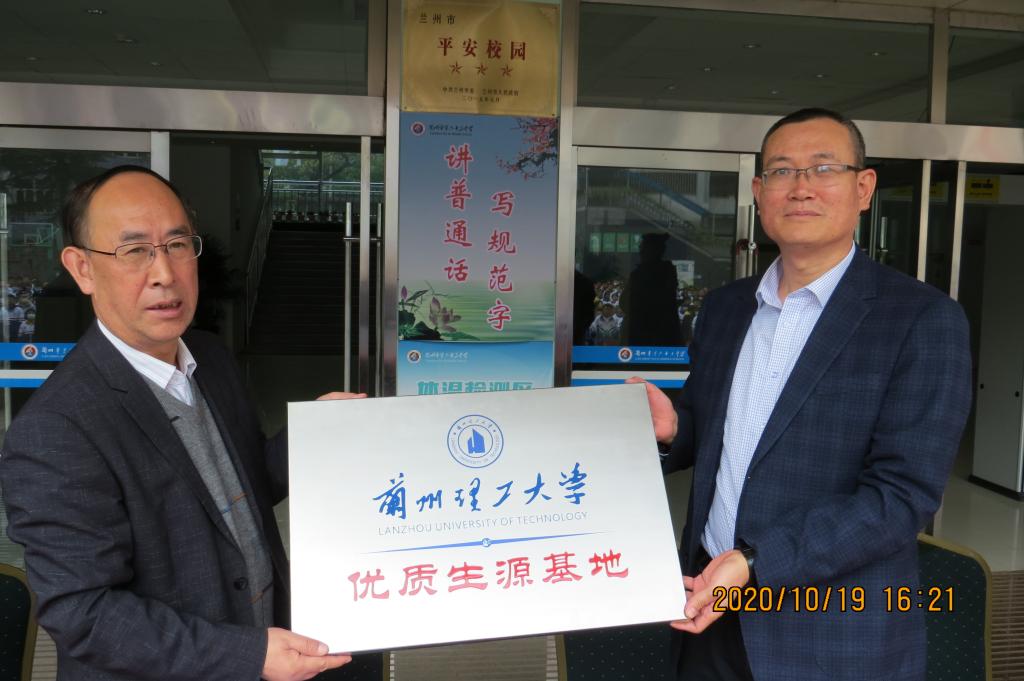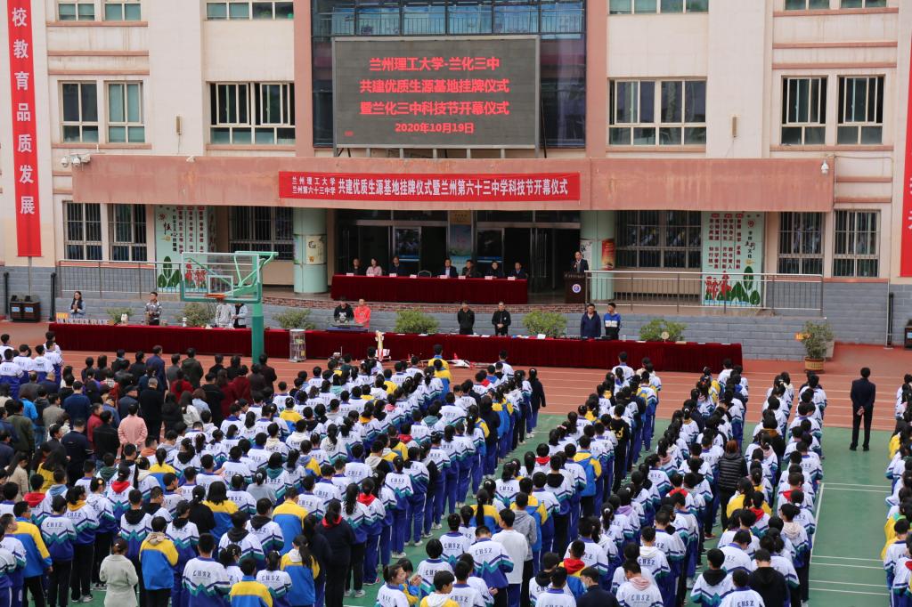 为积极发挥高校学科与人才培养优势,进一步加强高校与中学的交流与合作,建立双方友好合作的长效机制,为选拔、输送和共同培养优秀学生搭建更好的平台,经过材料科学与工程学院长期合作和有效沟通,10月19日下午,兰州理工大学-兰州市第六十三中学优质生源基地挂牌暨兰州市第六十三中学科技节开幕式在兰州市第六十三中学举行,材料学院院长李文生、教务处副处长刘永平、材料学院副院长李慧,教务处招生办公室主任赵忠兴、材料学院团委书记刘舒婕参加签约授牌仪式。仪式上,刘永平介绍了学校的历史沿革、发展现状、人才培养特色、优势专业、学生就业等情况,并表达了学校对兰州市第63中学第七届科技创新周活动的祝福。双方签署了“优质生源基地”协议书,我校向六十三中授予“兰州理工大学优质生源基地”铭牌。兰州市第六十三中学校长陈王生表示,将以此次共建优质生源基地为契机,向兰州理工大学大学输送更多的优秀学子,并希望进一步加强与高校的沟通联系,深化与高校之间的长效合作机制,更好发挥人才培养的衔接作用,为促进学生全面而有个性的发展搭建平台。