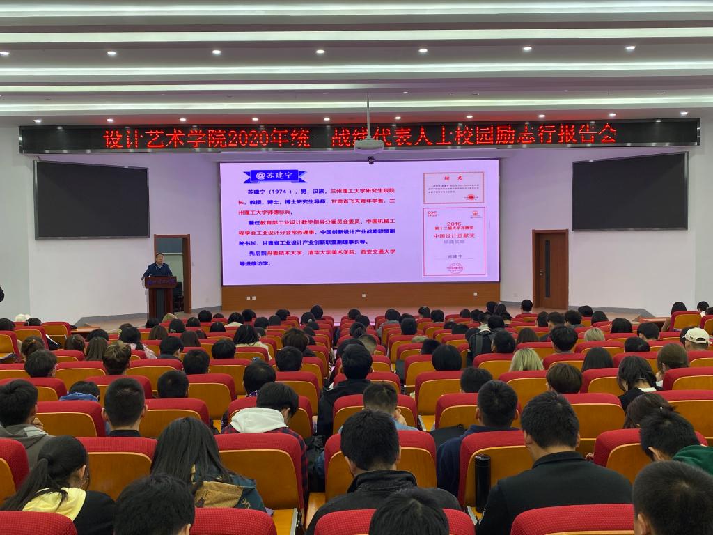 10月23日,设计艺术学院在兰工坪校区图书馆报告厅举行了2020年统一战线代表人士校园励志行报告会,学院邀请兰州理工大学研究生院院长苏建宁教授为2020级新生作了题为《百年兰理工@百年包豪斯---弘扬兰理工红柳精神·筑梦新时代设计征程》报告。