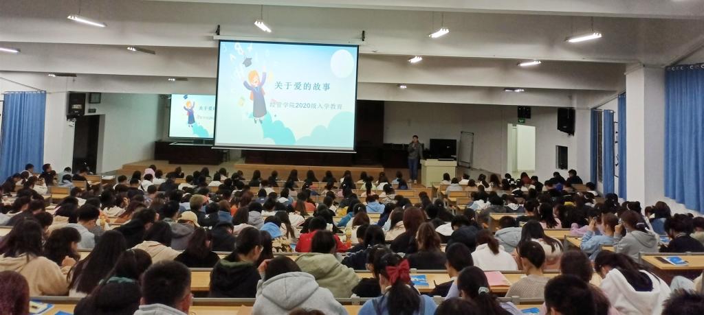 银杏影移,湛金浓郁,暖阳澄澈,百年兰理。为帮助同学们尽快适应大学环境,转变角色定位,开学以来,经济管理学院集中开展了包括安全教育、校史校情教育、学业规划教育、心理健康教育等系列新生入学教育活动,2020年10月25日晚,经济管理学院开展了第九次新生入学教育,帮助同学们尽快适应大学生活,迈好大学第一步。