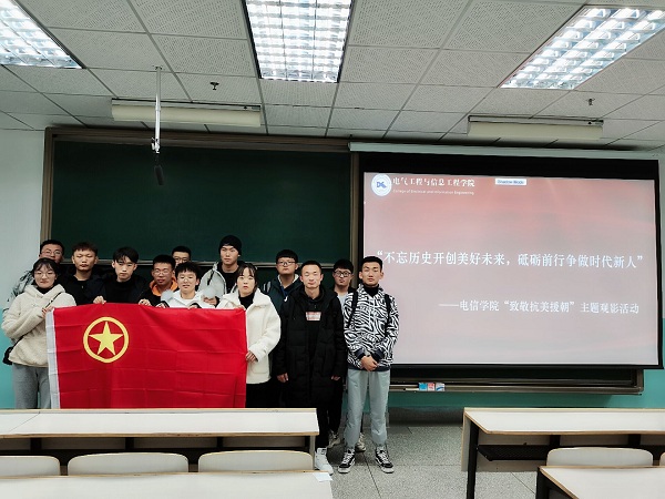 为纪念中国人民志愿军抗美援朝出国作战70周年,大力弘扬爱国主义精神。10月27日晚,电信学院于彭家坪校区东区励志楼组织开展了“不忘历史开创美好未来,砥砺前行争做时代新人”主题观影活动,全体2020级新生参加活动。