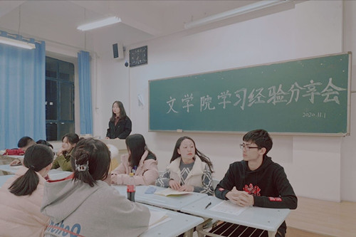 2020年11月1日晚7点半,20级汉语言文学1班在西教1-402进行学习经验交流会。会中,由18级和19级优秀学生代表为20级全体同学分享学习经验并解答同学们学习及生活中的困惑。