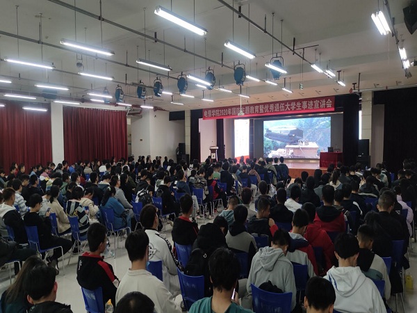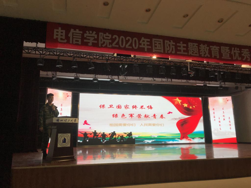 11月12日晚,电信学院于彭家坪校区大学生活动中心顺利举办2020年国防主题教育暨优秀退伍大学生事迹宣讲会。学校学生学业发展指导与国防教育中心唐洪川主任,学院优秀退伍大学生代表达选财、李林、刘泽润、何小强、张玉祥等五名同学,学院辅导员李婷、成晨以及各年级学生代表共300余人参加活动。