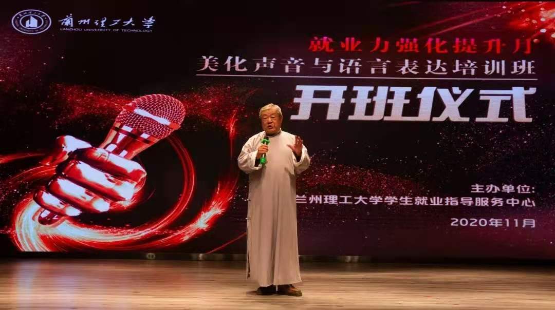 11月16日,学校第三届学生就业力强化提升实训月暨美化声音与语言表达培训启动仪式在兰工坪校区大学生活动中心举办。甘肃著名口技、相声表演艺术家王庆新,甘肃省朗诵专业委员会会长、著名播音员边城,中国作家协会、中国民族音乐研究院学术委员、作家安福学,朗诵艺术家、甘肃省著名播音员黄睿,军旅诗人李东方等嘉宾及学校师生代表500余人参加活动。