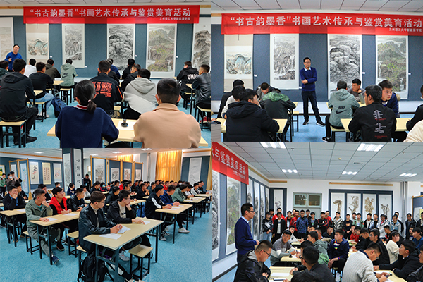 新能源学院特邀酒泉市党校常务副校长、酒泉市书画协会主席刘世朝于6日作《中华传统书法发展与鉴赏》、《书法临摹当中注意的问题》讲座,讲座通过举例,详细说明了中国书法从古至今演变过程及所遵循的规律,特别是应注意的问题及细节。11月7日,学院特邀酒泉职业技术学院飞天书画院院长作《中国传统绘画的欣赏》、《中国绘画的学习路径和方法》讲座,讲座对中国传统绘画进行了专题讲解,强调绘画讲究“心境”,考验的是人的细心、耐心和恒心。