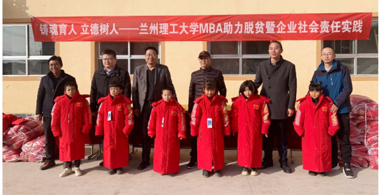 11月19号上午,百余名兰理MBA学员乘车出发到达下庄村。初冬的阳光洒在五家乡五家学区学校小学内,接受捐赠的小学生们集体列队。这次活动,兰州理工大学MBA中心将“企业社会责任教学实践”活动和学校教育扶贫相结合,向五家乡五家学区学校捐赠配发价值2万多元的冲锋衣作为御寒衣物,与会领导与MBA学员代表一起为孩子们穿上御寒的冬衣,鼓励孩子们坚持梦想,刻苦学习,早日学有所成,为社会作出贡献。