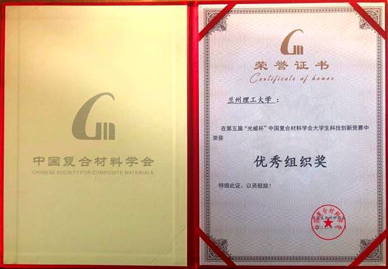 11月4日,第五届“光威杯”中国复合材料学会大学生科技创新竞赛总决赛在广东省东莞市、广东现代国际展览中心举办,中国工程院院士、固体火箭发动机专家、中国复合材料学会副理事长、中国航天科技集团有限公司科技委常委侯晓出席总决赛,并担任评委会荣誉主任。兰州理工大学获得大赛“优秀组织奖”,材料学院冉奋老师指导的“环境友好型聚合物基炭材料制备超级电容器”获得全国三等奖。