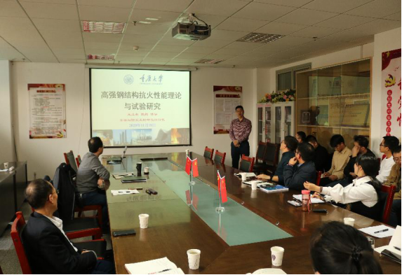 第二场报告由王卫永教授作了题为“高强钢结构抗火性能理论与试验研究”的学术报告,王教授先简要介绍了该课题的研究背景和研究意义,接着从结构抗火设计方法和高强钢结构抗火性能研究等方面进行了风趣幽默的介绍。此外,王教授结合自身学习和工作经历以及研究生培养等方面内容与现场师生进行了互动交流。