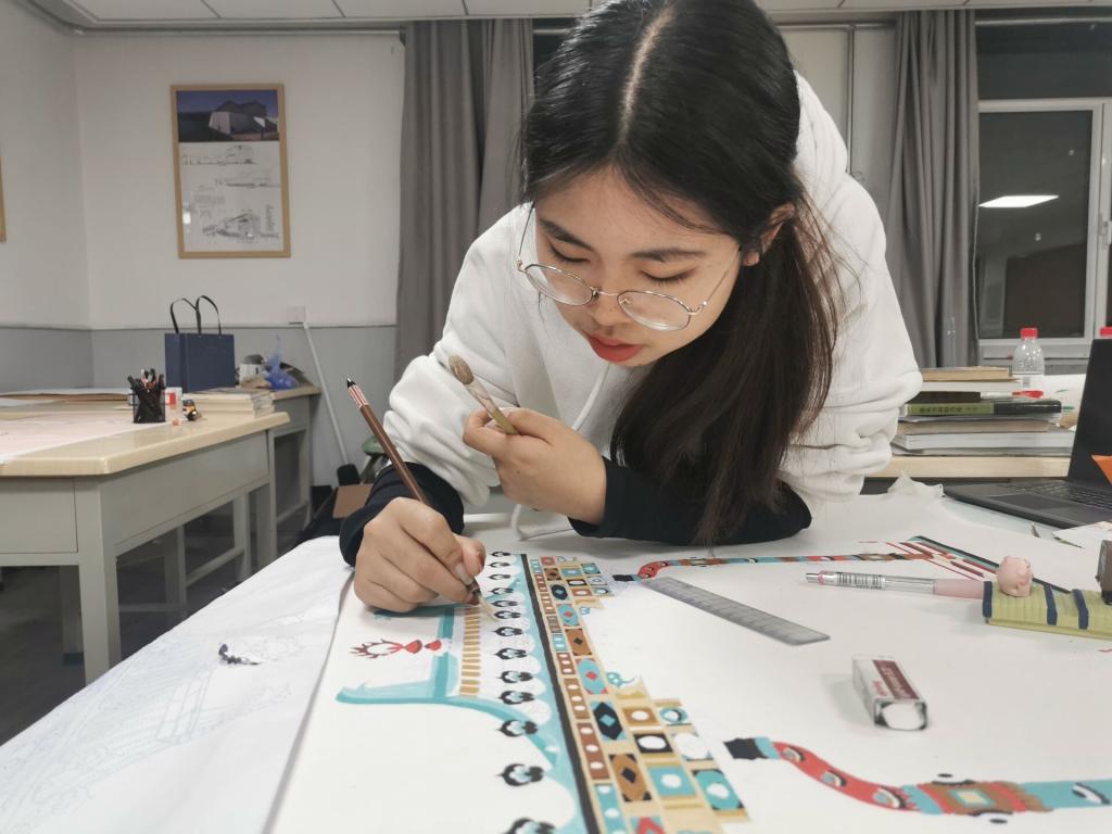 《中国建筑史》课程旨在通过知识学习和实践体验,使学生进一步掌握了传统建筑理论知识与内涵,实现中国优秀传统文化的认同与弘扬。此次课程作业展充分展示了设计艺术学院建筑学老师与同学们的专业素养,在叶明晖老师及杨润泽研究生的指导下,同学们对在课堂上所学习到的理论知识有了更加深刻的理解,极大地提升了自我艺术水平及实际操作能力,在为期三个星期的彩画临摹及模型制作中,同学们于实践中求真知,于细微处见功夫,在具体实践操作中,将课堂所学与实际相结合,充分发扬工大学子奋进求是的进取精神,在课程作业的完成过程中,每一名学生的综合素质都得到了极大的提升。