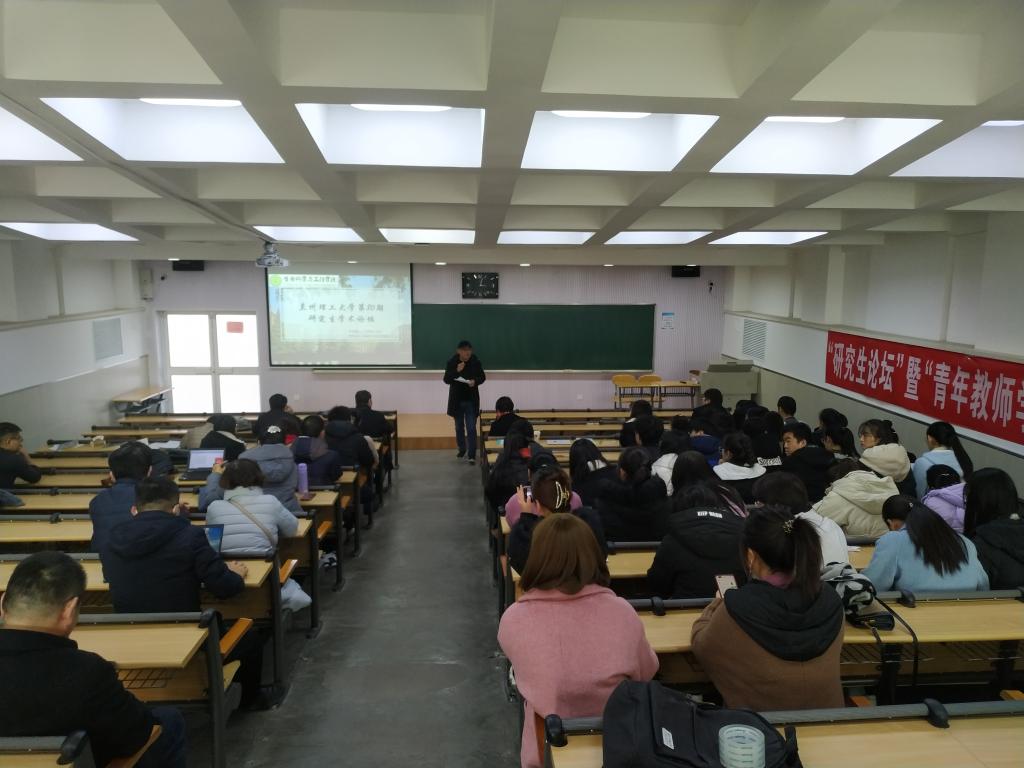 2020年11月26日下午,兰州理工大学第80期研究生学术论坛、生命科学与工程学院第三期“研究生论坛”暨“青年教师学术沙龙”在兰工坪校区1号北楼301教室成功举办。报告会由杨明俊副院长主持,生命学院全体教师和硕士研究生参加。生命学院新引进教师唐丹博士、郭晓鹏博士分享了自己的科研成果及心得体会。研究生国家奖学金获得者杜娜娜、王莉,研究生一等学业奖学金获得者郭小洁分享了自己的科研成果以及论文撰写技巧。