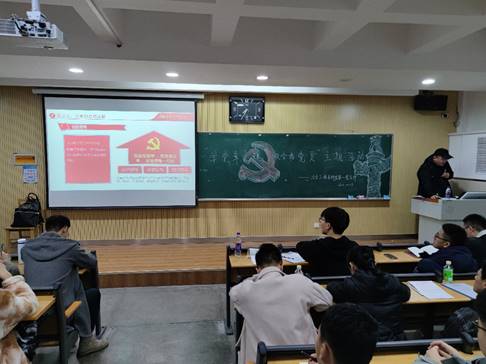 党支部书记周玉兰老师就支部发挥战斗堡垒作用,党员发挥先锋模范作用,做合格党员等方面工作进行汇报,结合身边的真人真事,为同学们端正态度,对大学四年的学习生涯规划给出建议。