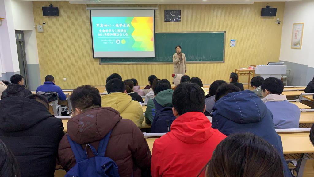 11月27日下午,生命科学与工程学院在兰工坪校区1号楼召开2021届本科毕业生考研冲刺动员大会。学院院长伍国强、党委副书记武军莉、辅导员王苍海及112位考研同学参加。