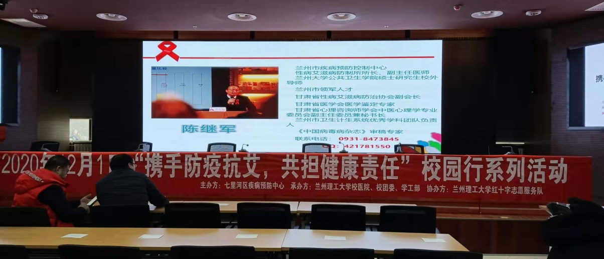 此次活动由七里河区疾病预防控制中心主办,校医院、校团委承办,学校红十字志愿服务队、爱心社、艾滋预防协会、跑步协会协办。