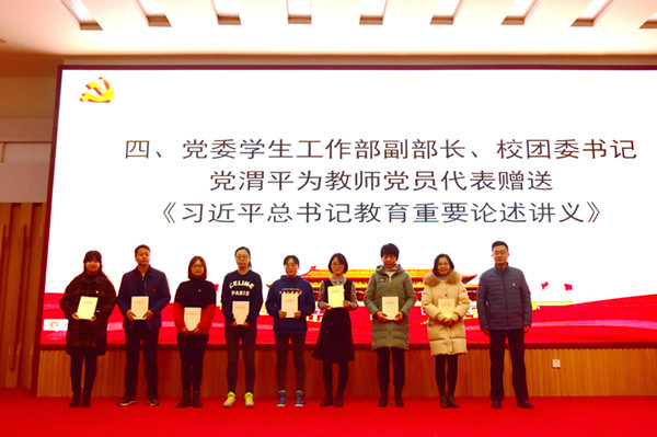 为教师党员代表赠送《习近平总书记教育重要论述讲义》读本