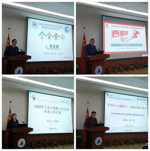 各支(系)部围绕支部书记述职、政治建设、组织建设、班子建设、教师党支部履行职责和作用发挥情况,对本支(系)部2020年工作开展情况、取得的成绩、存在的不足和未来工作计划进行汇报,评定工作小组进行现场打分。