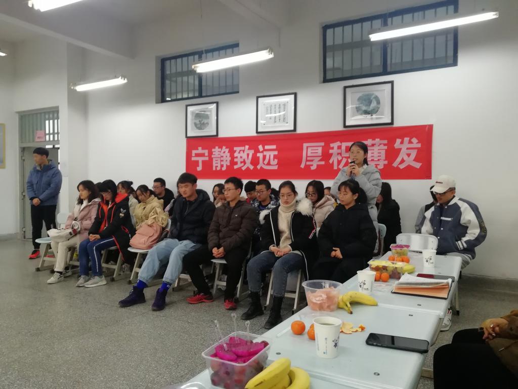 12月4日下午,生命学院2019级食品科学与工程班开展中干联系班级活动,在观成楼302教室召开“凝心聚力·创优良学风”主题班会。学校党委常委、副校长俞树荣,生命学院党委副书记武军莉、生命学院2019级食品班主任田辉、辅导员唐爱丽和代莎老师以及2019级食品科学与工程全体同学参加班会。