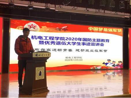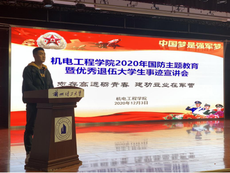12月3日晚,学院开展国防主题教育暨优秀退伍大学生事迹宣讲会,校学生工作部唐洪川主讲,宣讲会在彭家坪校区大学生活动中心三楼召开,辅导员程万栋、刘炜琪出席。